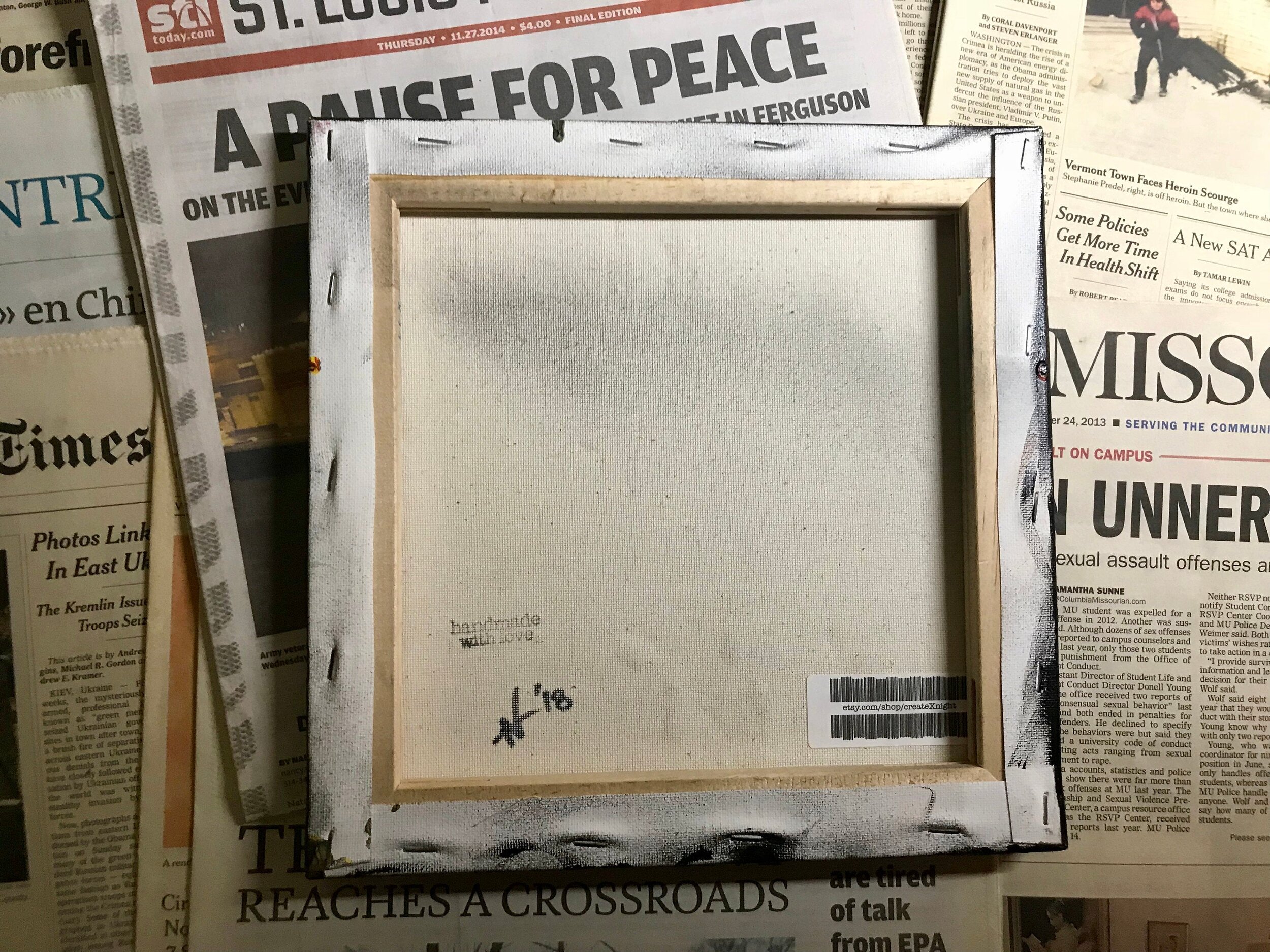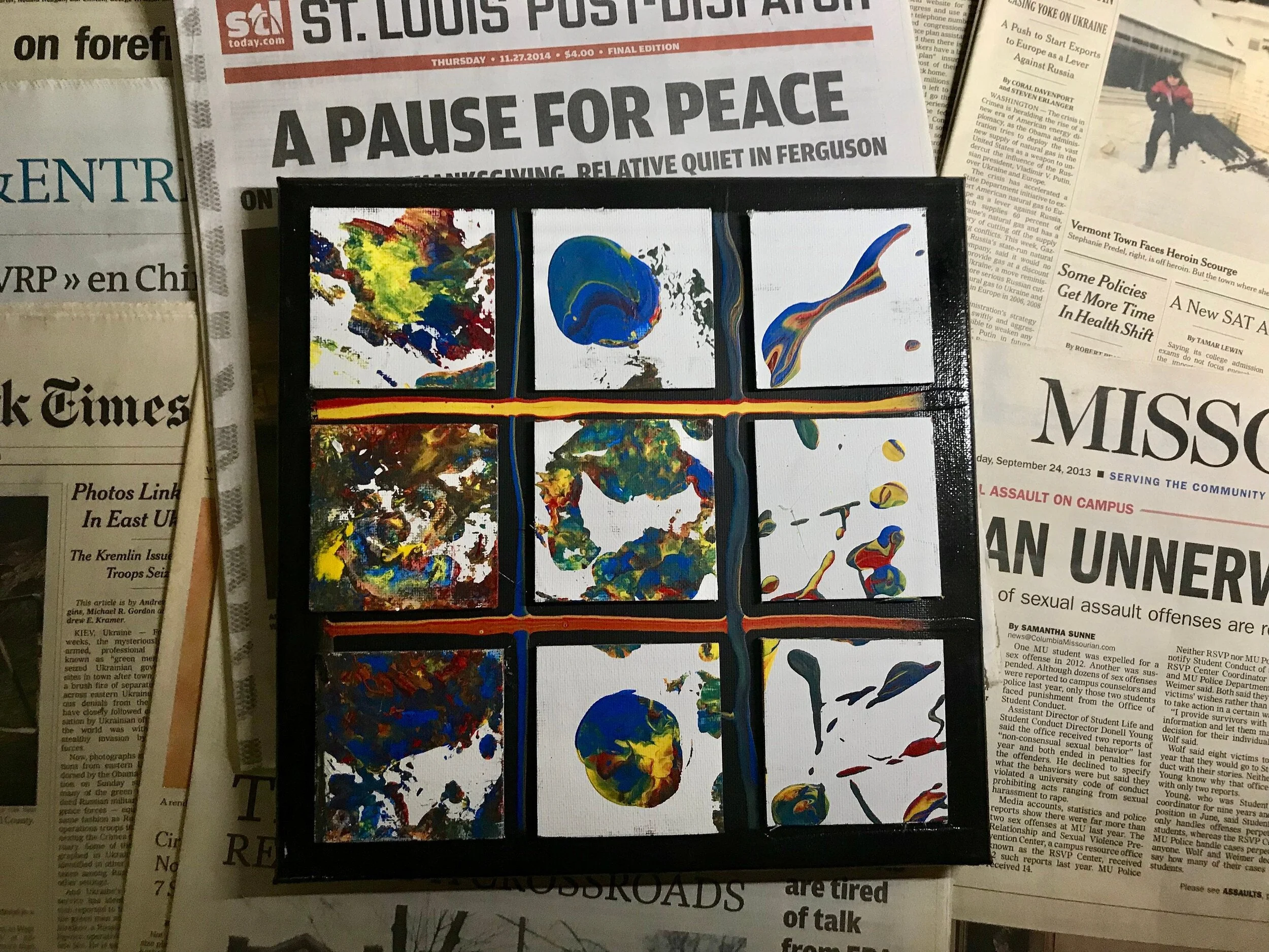 MEDIUM: Acrylic Paint on Canvas Panels Glued to Stretched Canvas