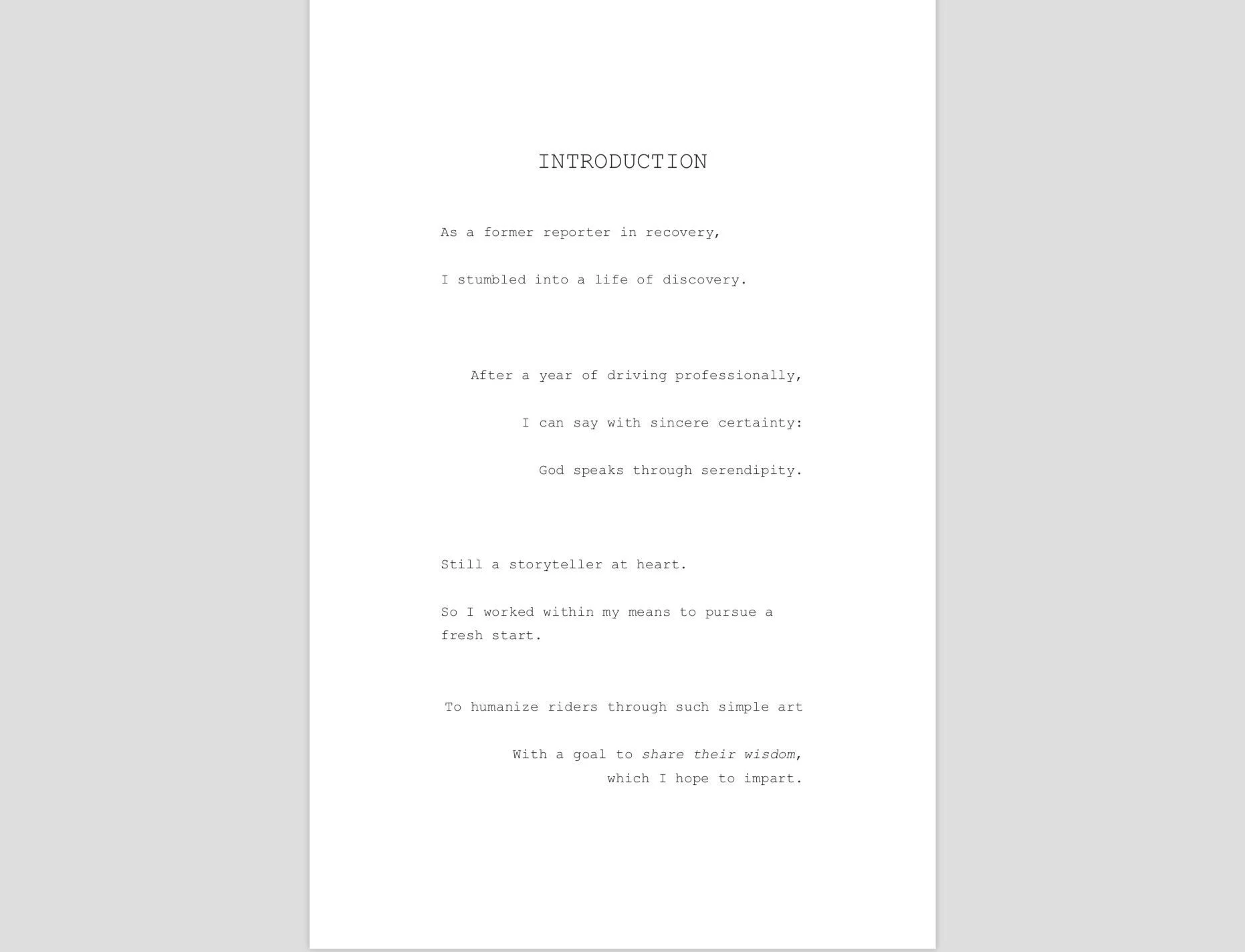 A Shel-Silverstein-style, short poem book comprised of 20 of my most outrageous trips driving for Uber. Volume No. 2 now available!
