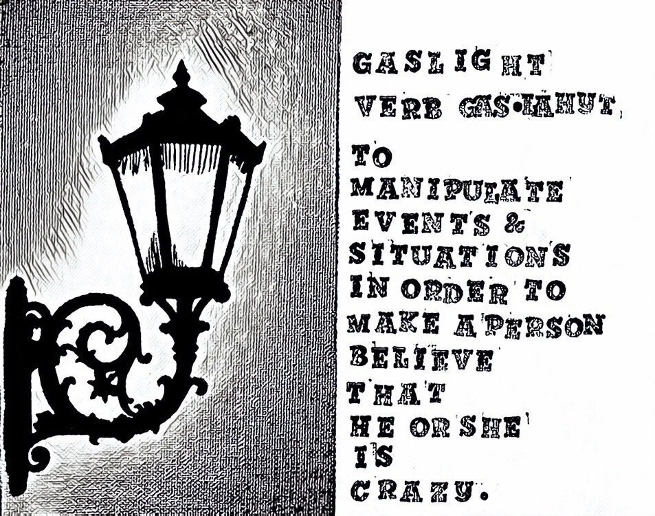 Gaslight (v.): manipulate (someone) by psychological means into questioning their own sanity.